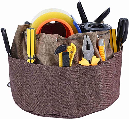 Namvo Borsa Multiuso per Attrezzi, Borsa per Attrezzi a Secchiello con Tasche Multiple e Coulisse Laterale, Manico in Nylon (Cachi)