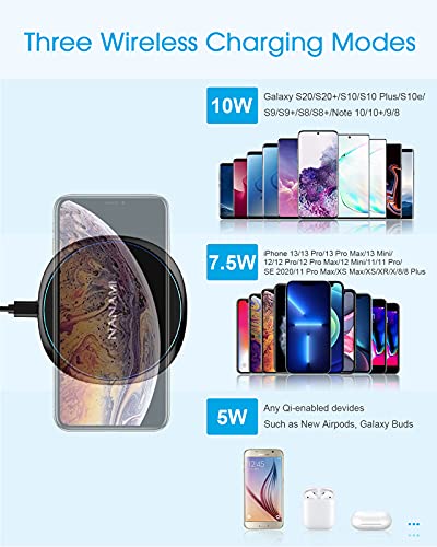 NANAMI Caricabatterie wireless con adattatore Quick Charge 3.0, 10 W, ricarica wireless veloce per Samsung Galaxy S21/20/10/9 Note 10, 7.5 W Qi per iPhone 12/11/X/XS/XS Max/XR/8/8 Plus
