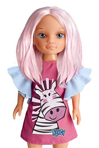 NANCY - Nancy, un giorno di colore, bambola da 42 cm con lunghi capelli rosa, vestitino rosa con zebra, per bambine/I dai 3 anni, Famosa 700015030