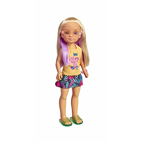 Nancy Rubia Tropicali, Bambola Bionda con Occhiali, Meches e Vestiti Colorati, 42 cm, Multicolore, 700016730