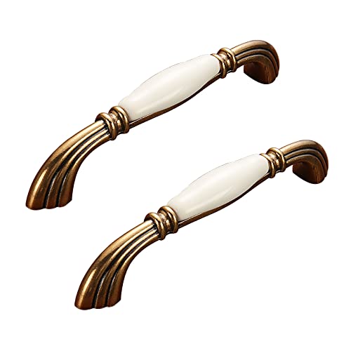 NANNAN0901 2 Pezzi Maniglia per Vintage Maniglie per Mobili Maniglie per Ante per Cucina Casa Bagno Armadio Maniglioni ad Arco, Lega di Zinco + Ceramica (Hole distance 128mm)
