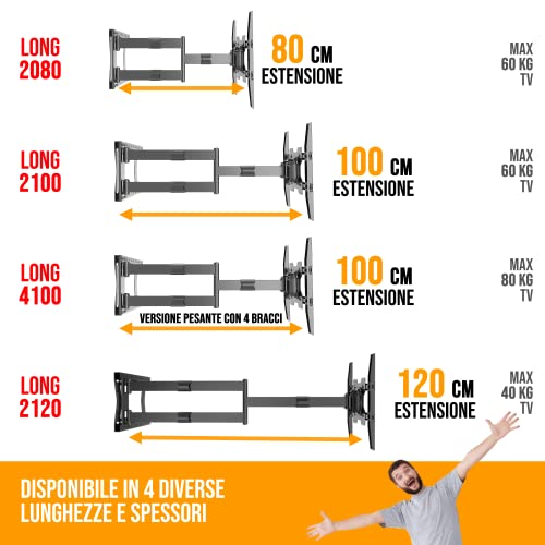 grazie alla lunghezza di estensione, potete anche sistemare la vostra grande TV perpendicolarmente alla parete