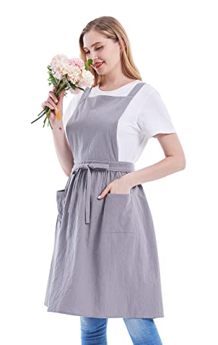 Nanxson Grembiule da Cucina in Lino - Grembiule Regolabile Grembiule da Donna in Lino da Uomo e da Donna CF3046 (Grigio, Taglia Unica)