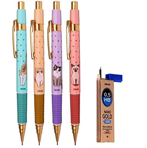 Java Pen Naong Style Cat Character Mechanical Pencil 0.5 mm - Pack of 4,Refill Leads 1 Tube, JAVAPEN