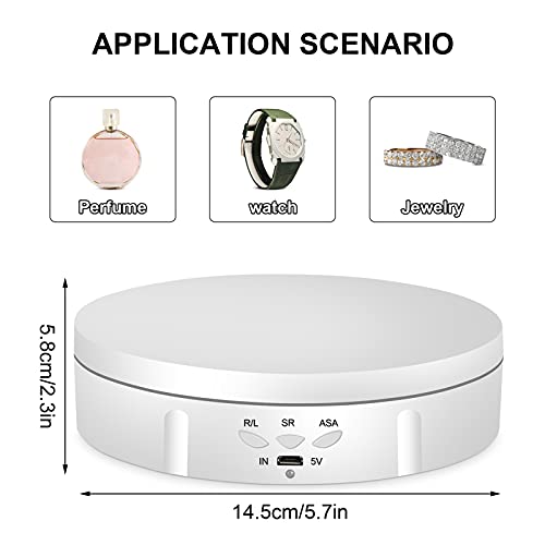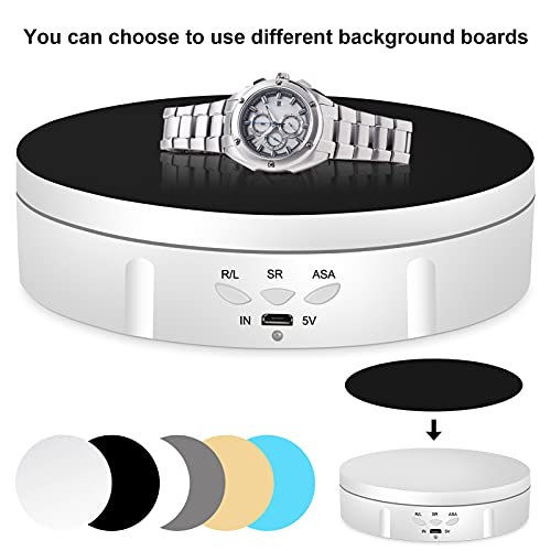 Napacoh Piatto girevole elettrico, girevole a 360 gradi, per fotografia, piattaforma girevole automatica, perfetto per immagini a 360 gradi, visualizzazione del prodotto, porta orologi, bianco