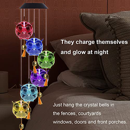 Napacoh Solar Lights Wind Chime, Lampada Gufo Outdoor Indoor LED Multicolor Interruttore Luce Impermeabile, Illuminazione da Giardino per Porta D'ingresso, Prato, Patio Dipinto di Giallo