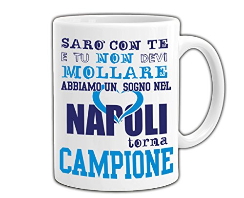 PLSH Napoli SSC Tazza Mug - Napoli sarò con te e tu non devi mollare - sogno cuore - napoli campione - Scudetto 2018 Campionato Serie A