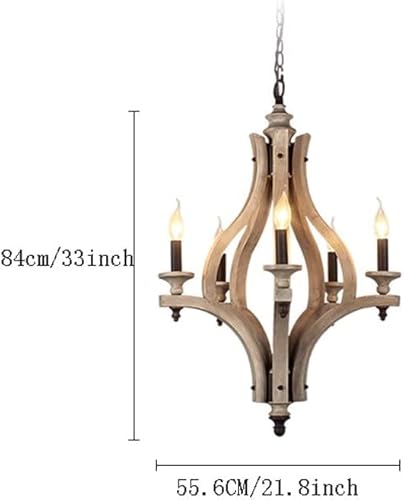 NARCISO - Lampadario a 5 luci in legno massello antico invecchiato rustico. Dimensioni 55x84 cm.