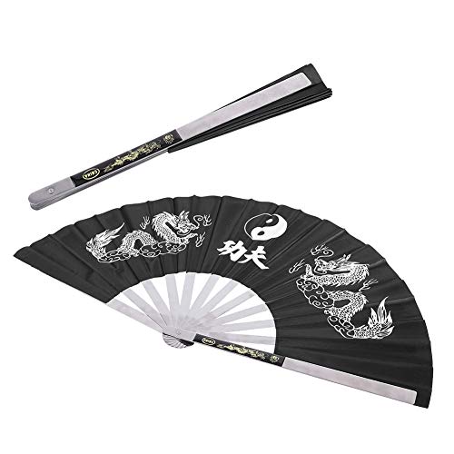 Naroote Ventaglio a Mano Pieghevole, Acciaio Inossidabile Tai Chi Arti Marziali Kung Fu Pratica Allenamento Performance Fan(Nero)