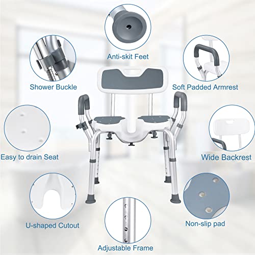 NArra Sgabello da doccia con Ritaglio per l'igiene, sedia doccia regolabile con braccioli schienale carico fino a 180 kg con cuscinetti antiscivolo, sedia da bagno per anziani, donne incinte, disabili