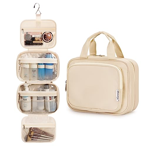 Narwey Beauty Case Borsa da Bagno da Appendere Borsa per Trucco da Viaggio Organizzatore Cosmetico per Donne e Ragazze (Marrone(Medio))
