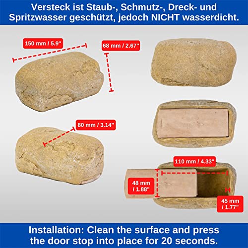 ✅ [Portachiavi in pietra con scomparto segreto extra grande da 110 x 48 x 45 mm] Con il nascondiglio per chiavi extra grande possono essere riposti in modo sicuro anche chiavi grandi e lunghe con portachiavi e oggetti di valore.