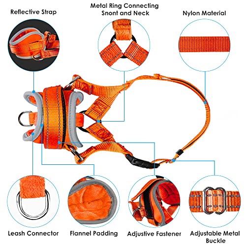 Guinzaglio facile da collegare - Con l'uso del guinzaglio, l'anello a D in metallo impedisce al cane di mordere e abbaiare, consente di guidare dalla testa e dà un migliore controllo dei cani, che è super comodo e pratico.