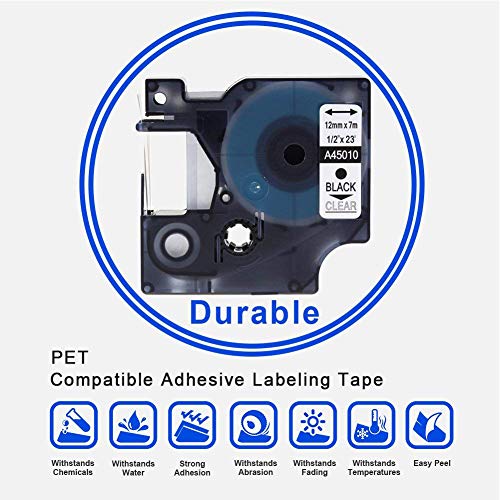 5 x nastri compatibili D1 45010 come ricambio per Dymo D1 12 mm x 7 m, nero su trasparente, per nastri Dymo LabelManager 120P 400 350D