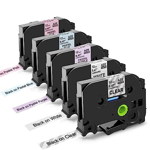 Include: TZe-231 TZe-231 TZe-131 TZe-MQF31 TZe-MQ531 TZe-MQE31, nero su bianco/ trasparente / rosa pastello/ blu pastello/ viola pastello nastro, 12 mm x 8 m (0,47 "x 26,2 piedi).