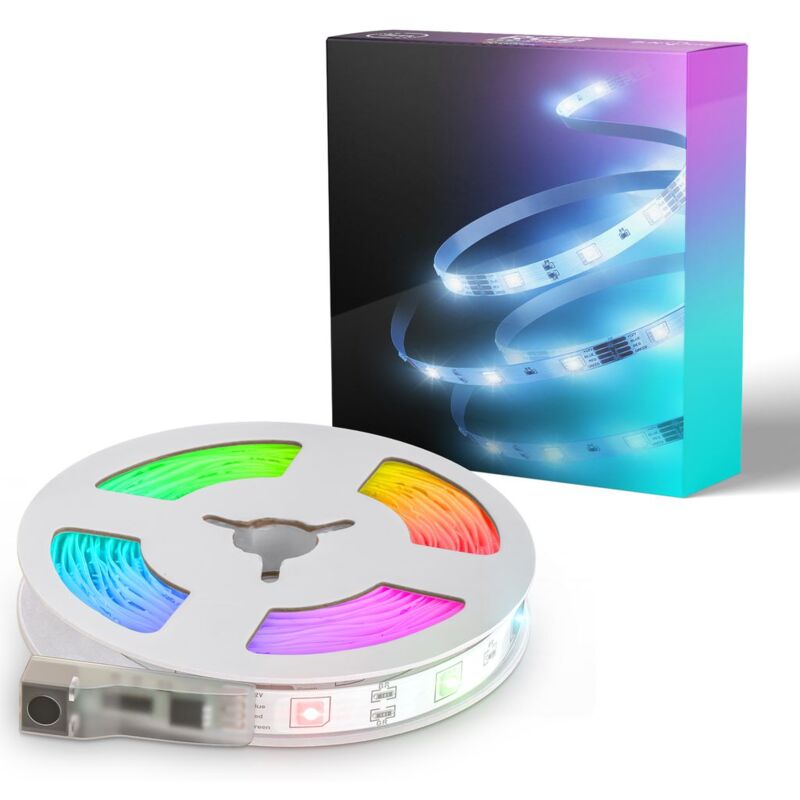 Striscia luminosa USB RGB da 3 m Striscia luminosa con cambio di colore dimmerabile Flexband La striscia LED USB è lunga 3 m e larga 1 cm. La striscia luminosa può essere utilizzata come illuminazione speciale e d'atmosfera e come illuminazione indiretta, in quanto può essere incollata ovunque. L'ultimo tratto di cavo può essere accorciato individualmente. La striscia luminosa a LED contiene 90 luci LED RGB colorate ed è dotata di protezione IP20. La striscia LED RGB è dimmerabile e può essere facilmente controllata tramite un telecomando. Tramite il telecomando è possibile selezionare gli effetti di luce e i colori, per creare un'atmosfera accogliente e di festa. La striscia LED RGB viene fornita con un cavo di 1,5 m ed è adatta come illuminazione nella sala giochi sul PC durante lo streaming o in salotto quando si guarda la TV come illuminazione di sfondo. Con questa striscia LED potete creare un'illuminazione d'atmosfera personalizzata per le vostre stanze: camera dei bambini