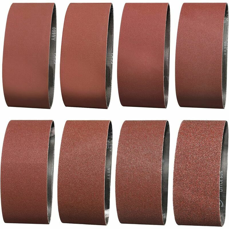 Grane - - Comprese le grane più comunemente usate: 1 X 40/60 2 X 80/120/180/240/320/400 grane, in totale 14 strisce di carta vetrata 75 x 457, soddisfano le tue esigenze quotidiane di levigatura e rimozione [Materiale]: i nastri abrasivi sono realizzati con grana di ossido di alluminio a rivestimento aperto resistente e l'artigianato di qualità completamente legato alla resina consente una grana uniforme, fornendo una levigatura liscia, veloce e duratura [Connessione] - Giunto a striscia a due vie progettato con precisione, la connessione diagonale elimina i dossi di giunzione, l'interfaccia della striscia della levigatrice a nastro è piatta, solida e non facile da rompere sotto pressione [Applicazione] - Adatto per 457X75mm (18X3 pollici) levigatrice a nastro - fornisce levigatura, sverniciatura e levigatura da grossolana a fine per legno, alluminio, fibra di vetro, gomma, plastica, pietra e metalli non ferrosi, ecc. [Altre grane] - Grana t molto completo, da grossolano a fine 40
