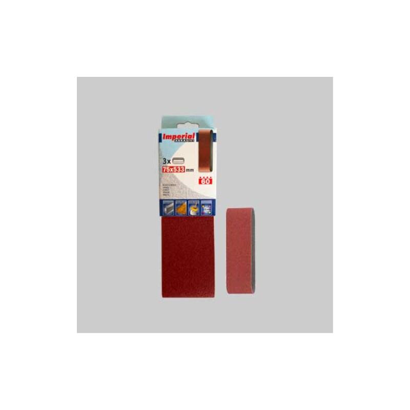 Dimensioni mm.75x533. Per levigatrici a nastro. Per sverniciare, pulire e levigare ferro, acciaio, legno e plastica, per rimuovere la ruggine e lavorare la carrozzeria. Nastro abrasivo 75x533 mm grana 120 - 3 pezzi IMPERIAL ABRASIVI Carta abrasiva