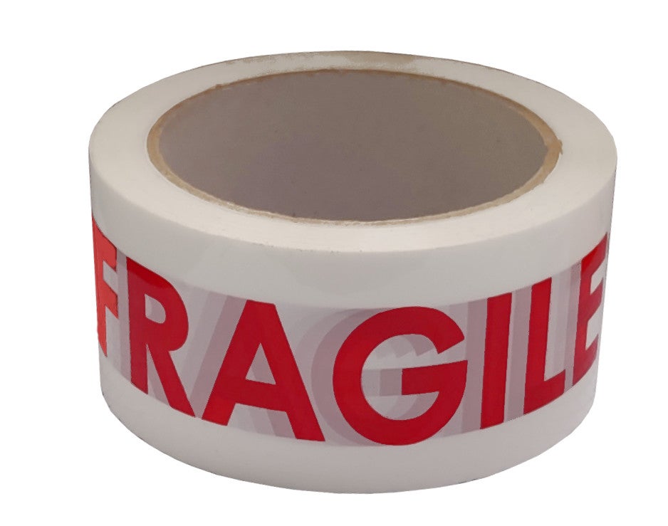 Set Composto da 12 rotoli di nastro adesivo in PPL colore Bianco con stampa Fragile formato 48mm X 66mt. Ideale per identificare gli imballi fragili