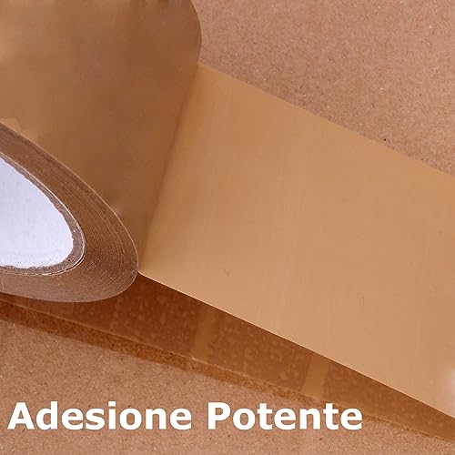 - La confezione di 6 pezzi del Nastro adesivo marrone 68MTx50mm conferisce un tocco di eleganza indispensabile per mantenere gli oggetti uniti in modo affidabile durante il trasporto o l'archiviazione. Il nastro si rimuove senza lasciare residui appiccicosi sulla superficie e si adatta per cartone, carta, plastica e altre superfici comuni. Realizzato in carta kraft biodegradabile, rispetta l'ambiente.