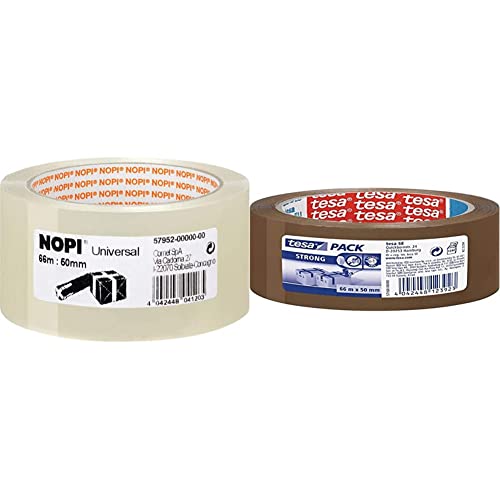 NOPI Nastro Adesivo per Pacchi, per Imballaggi e Sigillature, Resistente all'Invecchiamento e allo Strappo & TESA TE57168-00000-05 Strong Nastro adesivo da imballaggi, 66m x 50mm