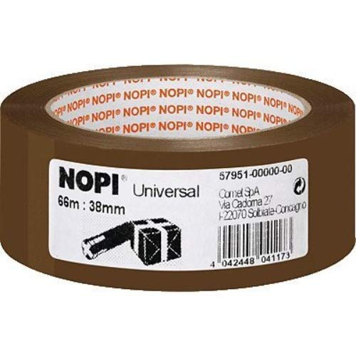 NOPI Nastro Adesivo per Pacchi, per Imballaggi e Sigillature, Resistente all'Invecchiamento e allo Strappo, Forte e Privo di Solventi, Marrone, 66 m x 38 mm