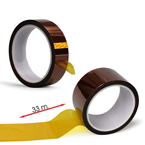 ACIT, Nastro adesivo Poliimmide resistente alle Alte Temperature, Kit 2 rotoli, nastro termico Con Adesivo Silicone, Stampanti 3d, mascheratura, saldatura isolamento di Circuiti ((25mm x 33m))