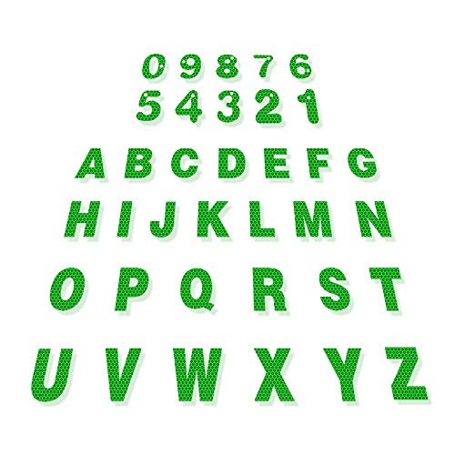 Materiale di alta qualità: Vinile riflettente autoadesivo (PVC), lettera A Z Gr Size: 40 x 40 mm (lunghezza x larghezza), numero 0 9, dimensioni: 50 x 50 mm (lunghezza x larghezza). Colore: Verde