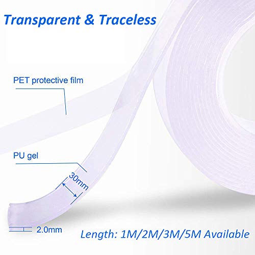 Nastro adesivo riutilizzabile senza traceless, forte nastro magico del gel trasparente bifacciale rimovibile lavabile nastro appiccicoso antiscivolo multifunzione