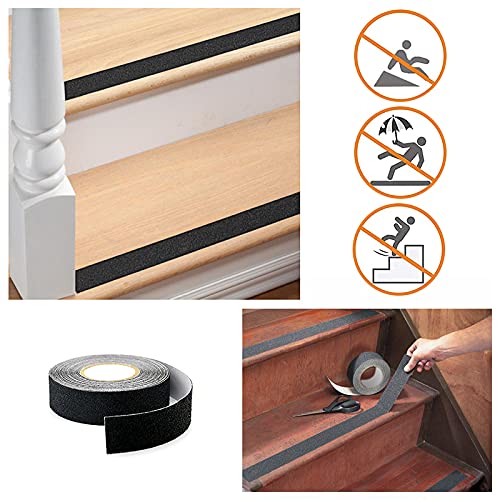 Nastro antiscivolo ad alta trazione, resistente, abrasivo, nero, antiscivolo, per binari di sicurezza, per scale e gradini, rampe (25 mm x 5 m)