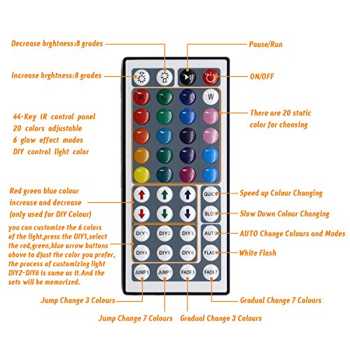 LED nastro Banda, jirvyuk nastro LED multicolore 5050 RGB SMD flessibile luminoso kit di nastro a LED- 300 LED + Adattatore + alimentazione + Telecomando a infrarossi 44 tasti Lumière-01