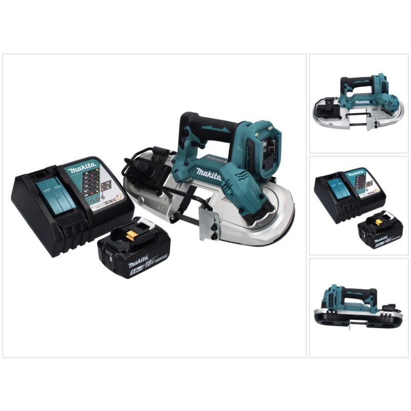 Contenuto della fornitura: - 1x sega a nastro a batteria Makita DPB 183 18 V - 1x chiave a brugola da 4 mm (783202-0) - 1x lama a nastro - 1x Batteria Makita BL 1850 B 18V 5.0Ah - 1x Caricabatterie Makita DC 18 RC 18V Descrizione del prodotto: La sega a nastro a batteria Makita DPB 183 è molto robusta grazie alla stabile struttura del ponte con telaio in alluminio. La lama della sega a nastro a batteria può essere sostituita rapidamente e senza attrezzi grazie al fissaggio rapido. La sega a nastro è ideale per tagliare tubi e profili fino a 66 x 66 mm in modo rapido e senza scintille. Grazie alla velocità regolabile del nastro, è possibile ottenere risultati ottimali a seconda delle esigenze. Il motore brushless consente un design compatto, rendendo la sega a nastro estremamente pratica. Inoltre, grazie al basso consumo energetico, il motore brushless può funzionare più a lungo con una singola carica della batteria. Il freno motore elettrico integrato protegge l'utente in caso di