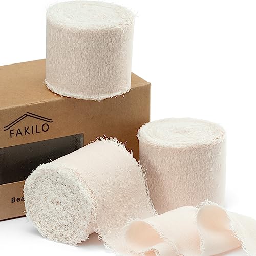 Nastro Beige in Chiffon per Confezioni Regalo, FAKILO Nastro con Frange 3 Rotoli 3,8 cm x 19,5 m Set di Nastri Vintage per Inviti di Nozze, Decorazioni per Feste di Compleanno