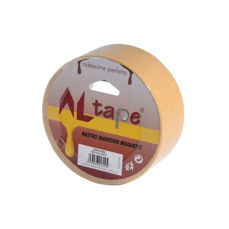 Biadesivo plastificato Colore bianco Adatto per posa moquette Tipologia - Nastri adesivi Marca - Altape Caratteristiche - mm 50 m 5