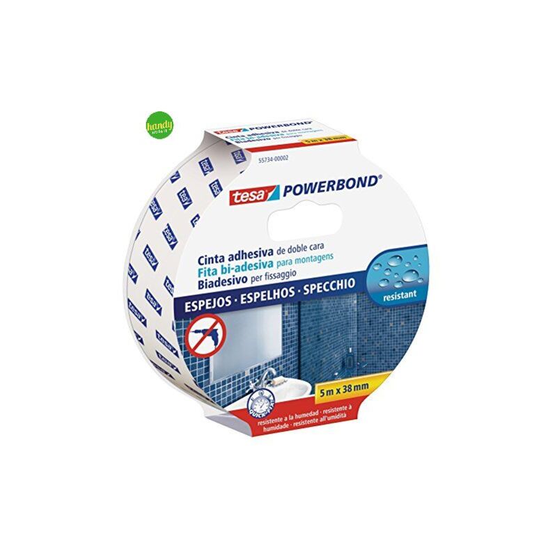 Nastro adesivo per specchi per un montaggio solido e robusto senza il bisogno di perforare. Flessibile e adattabile: qualunque misura abbia lo specchio, che sia grande o piccolo, il nastro adesivo è regolabile nella lunghezza desiderata (oggetti fino a 70x70 cm con spessore di 4 mm). Tenuta salda: grazie alla sua elevata resistenza, soprattutto nelle aree umide comei bagni, il biadesivo assicura un'installazione stabile dello specchio. Il nastro biadesivo può reggere specchi fino a 4 mm di spessore dalle piastrelle. Dimensioni: 5 m x 19 mm. Adatto per specchi fino a 70x70 cm. Misure: 5 m 38 mm. Adatto ad aree con vapore come bagno o cucina.