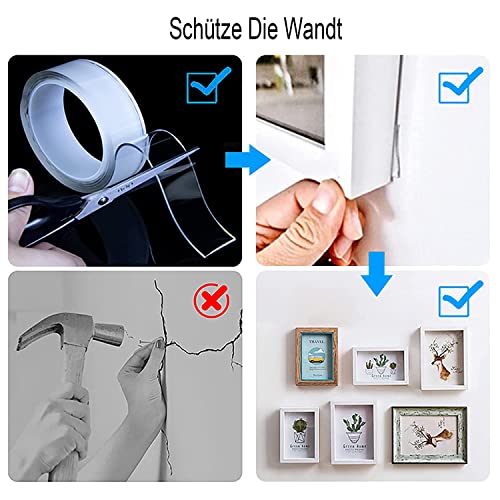 CAM2 Nastro biadesivo extra forte magico Nano biadesivo trasparente staccabile nastro biadesivo biadesivo biadesivo adesivo lavabile per tappeti, cornici foto cucina (5 m)