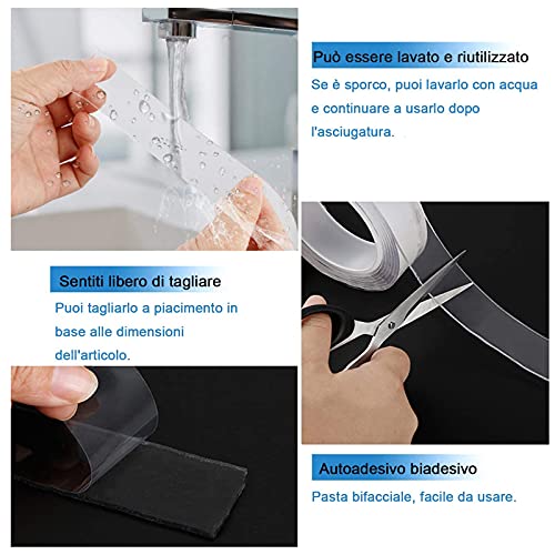 5M Nano Nastro Biadesivo,Biadesivo Extra Forte, Nano Tape,Multifunzione Trasparente Nastro Adesivo,Non Lascia Tracce,Riutilizzabile, Articoli in Pasta Nastro Adesivo Rimovibile e Lavabile