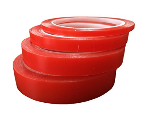 Strato acrilico adesivo trasparente di 0,2 mm. Pellicola rossa di protezione. Nastro fortemente adesivo.