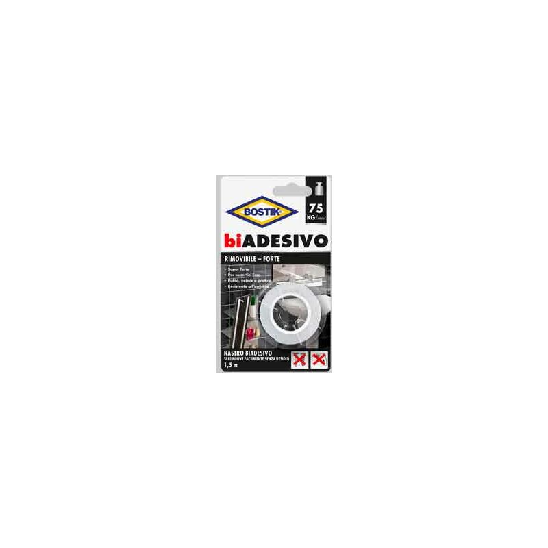 Nastro biadesivo extra forte ma facile da rimuovere per il montaggio e il fissaggio permanente di oggetti su superfici lisce in ambienti interni. Perfetto per metallo, piastrelle, plastica, vetro, legno verniciato, ecc. Non adatto per l'applicazione su superfici ruvide (pietra, intonaco decorativo) e murali vinilici. Massima capacità di carico dopo 60 minuti. Portata massima 75Kg.