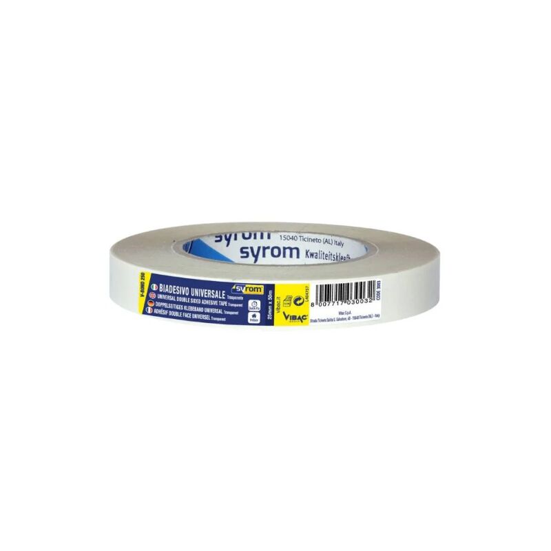Nastro biadesivo in ppl - adesivo hot melt - alt. 25 mm e lungh. 50 m - biadesivo multiuso per fissaggio di tessuti, carta e materiali plastici - anima rotolo 3 - confezione in rotolo singolo. Nastro biadesivo in ppl - adesivo hot melt - alt. 25 mm e lungh. 50 m - biadesivo multiuso per fissaggio di tessuti, carta e materiali plastici - anima rotolo 3 - confezione in rotolo singolo. Descrizione prodotto: 25 mm x 50 m Variante: trasparente Codice Produttore 30003 Produttore syrom Colore Trasparente Peso 0.2 Imballo (q.ta' consigliata) 48 Formato 25 mm x 50 m