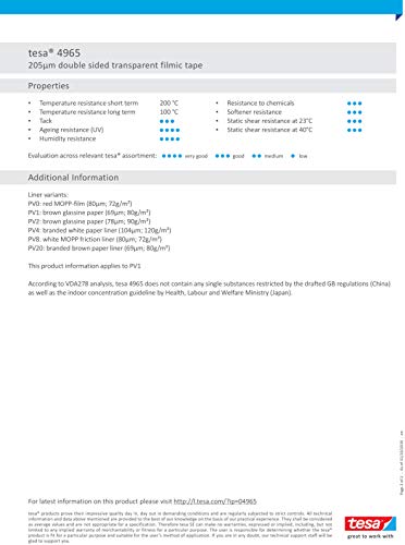 * Nastro biadesivo trasparente ad alta resistenza alla temperatura e all'esterno. Con supporto in PET e adesivo acrilico modificato.