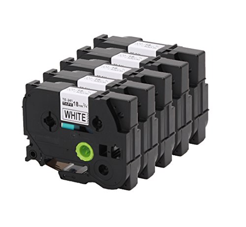 5x Nastro Tape Cassette per Brother TZe-241 nero su bianco 18 millimetri di larghezza x lunghezza 8m compatibile con TZ241