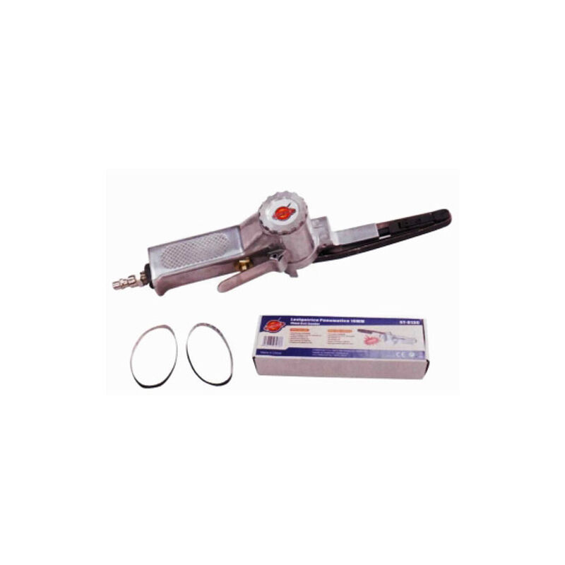 Levigatrice/Smerigliatrice a nastro ad aria compressa, ideale per levigare in spazi ristretti di difficile accesso, per raggiungere parti cave o interni di tubi grazie al braccio di levigatura lungo ben 33cm. Ottima anche per levigare cordoni di saldature