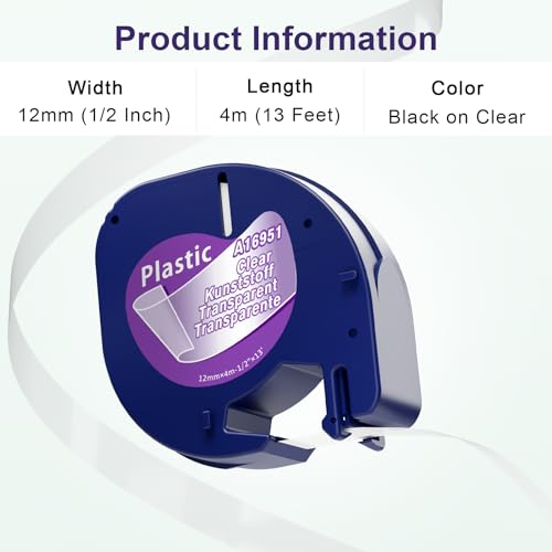 Queste compatibile con dymo trransparente cartucce in plastica resistenti antistrappo resistenti all'acqua e in grado di asciugare sono ideali per codificare a colori i cassetti organizzare i tuoi effetti personali o etichettare i vasi per le spezie.