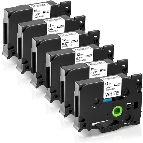 Nastro per Etichette Fimax Compatibile In sostituzione di Brother P-touch Laminato Tape Cassetta TZe-231 12mm per PT H107 1000 H105 1010 Cube PT-P300BT H110 H100LB (Bianco, 6Pz.)