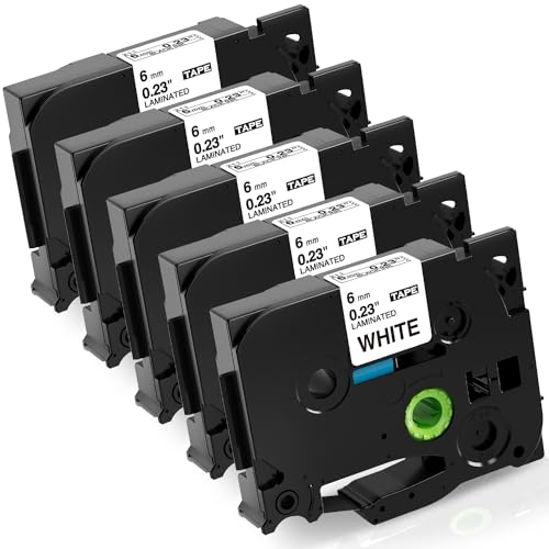 Nastro per Etichette Fimax Compatibile In sostituzione di Brother P-touch Laminato Tape Cassetta TZe-211 6mm per PT-H105 H107B H200 H100LB H100R 1000 1010 P300BT H110 (Bianco, 5Pz.)