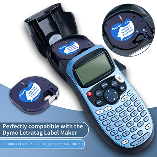 Nastro per Etichette Fimax Compatibile In Sostituzione di Dymo LetraTag 12mm x 4m Etichette in plastica Nera su bianco, Ricarica Dymo per Etichettatrice Dymo Letratag LT-100H XR LetraTag 200B