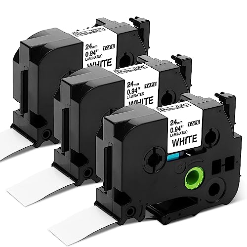 Nastro per Etichette Fimax Compatibile In sostituzione di P-touch 1" (0.94") TZe251 Laminato Tape 26.2 ft. (8m) per Brother P Touch PTD600 PTP700 PTP900W PTP950NW (Nera su Bianco, Confezione da 3)