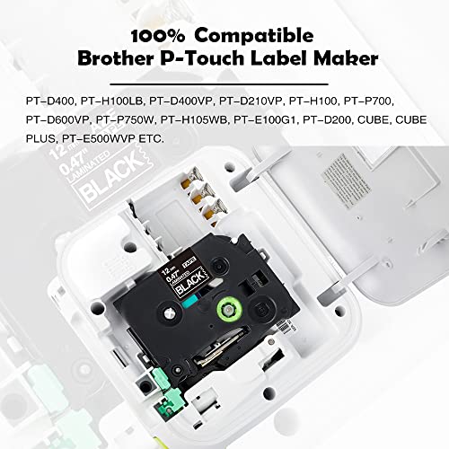 3. Compatibile con tze tz tape 12mm adesivo sostituzione per proprietà: Impermeabile, resistente all'abrasione, resistenti ai prodotti chimici non dissolvenza, resistente alle alte temperature, durevole, l'adesione, senza residui appiccicosi durante la rimozione.
