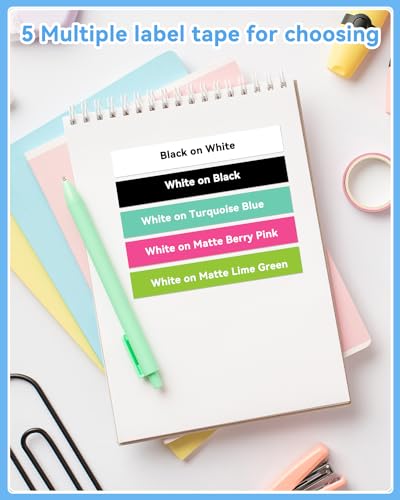 Pacchetto: 5 pack nastri compatible con Brother P-Touch TZe TZ 12mm 0,47" TZe-231 nero su bianco, TZe-335 bianco su nero, TZe-T535 bianco su blu turchese, TZe-MQP35 bianco su rosa bacca, TZe-MQG35 bianco su verde, Dimensioni: 12mm x 8m.